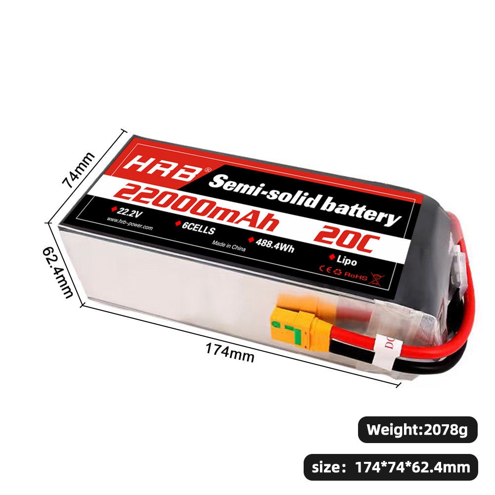 HRB 22000mAh 20C 6S 22.2V Semi-solid battery Customizable