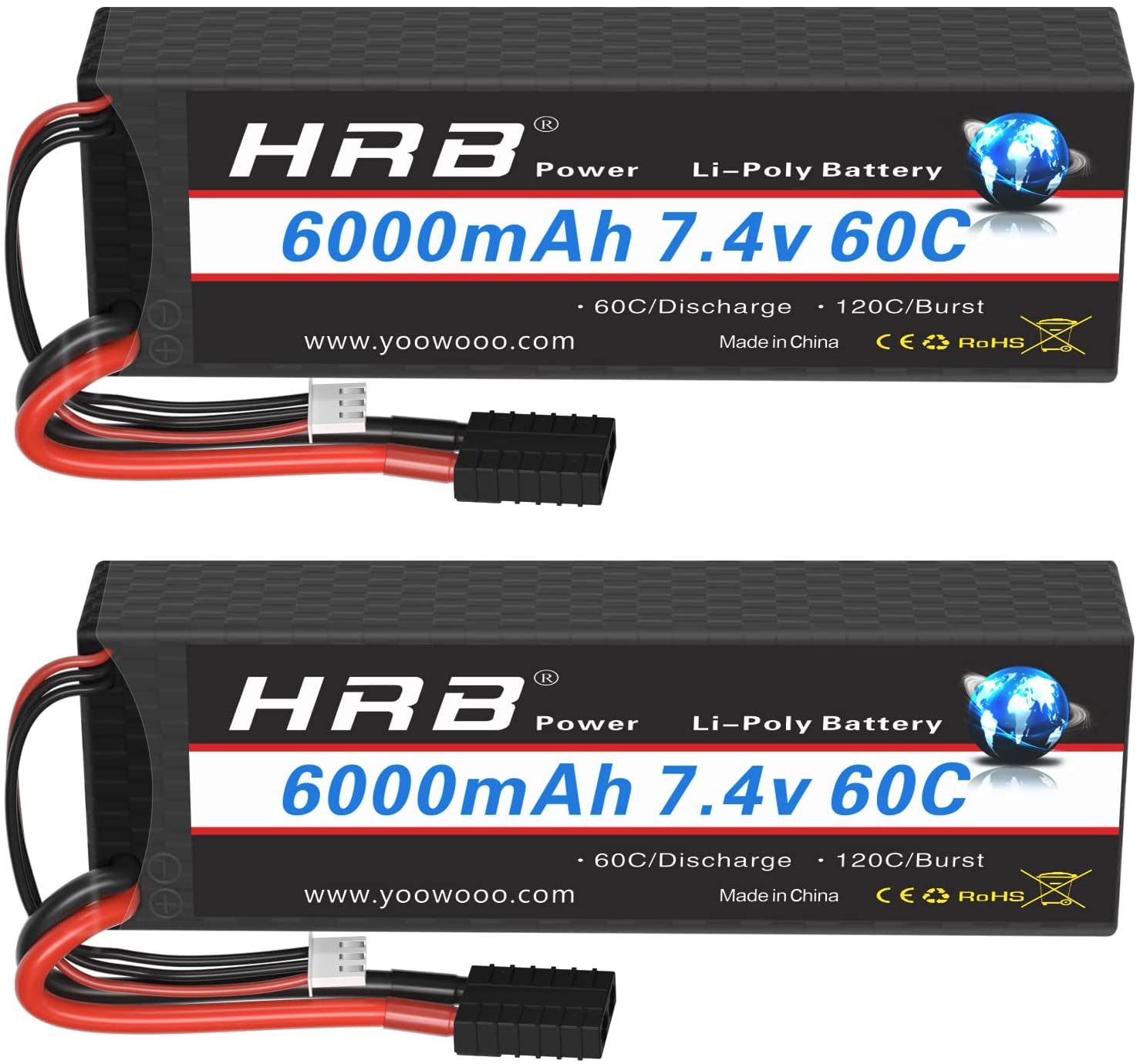 2 Packs HRB 7.4V 6000mAh 60C with TR Plug Compatible with RC Car/Truck/Boat/Airplane/Helicopter
