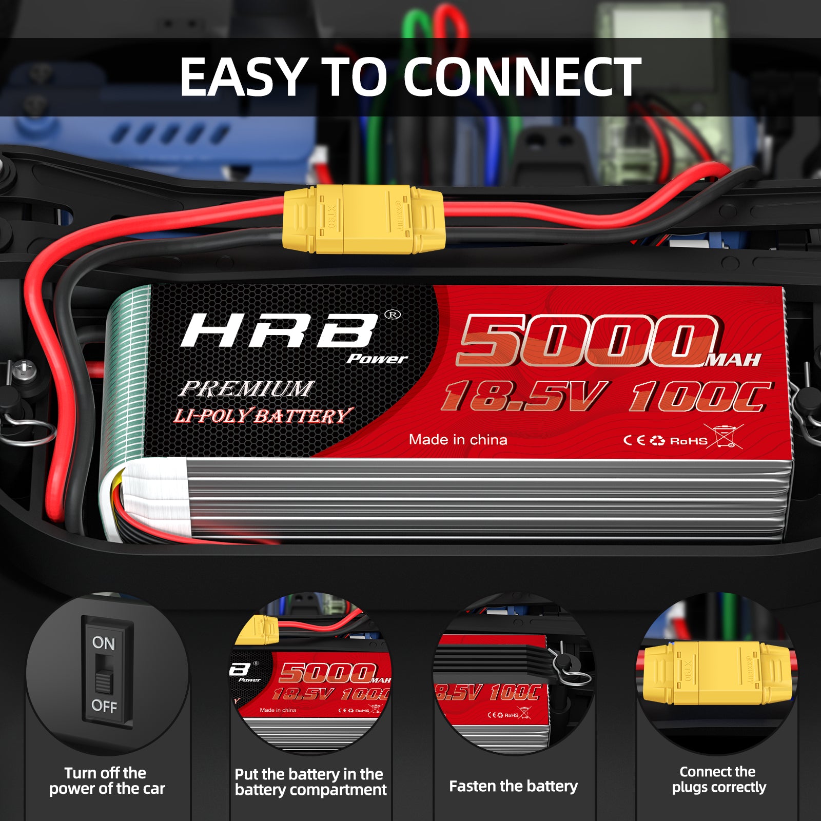 HRB 18.5V LiPo Battery 5000mAh 100C with XT90 Plug for RC Airplane/Helicopter/Car/Truck/Boat