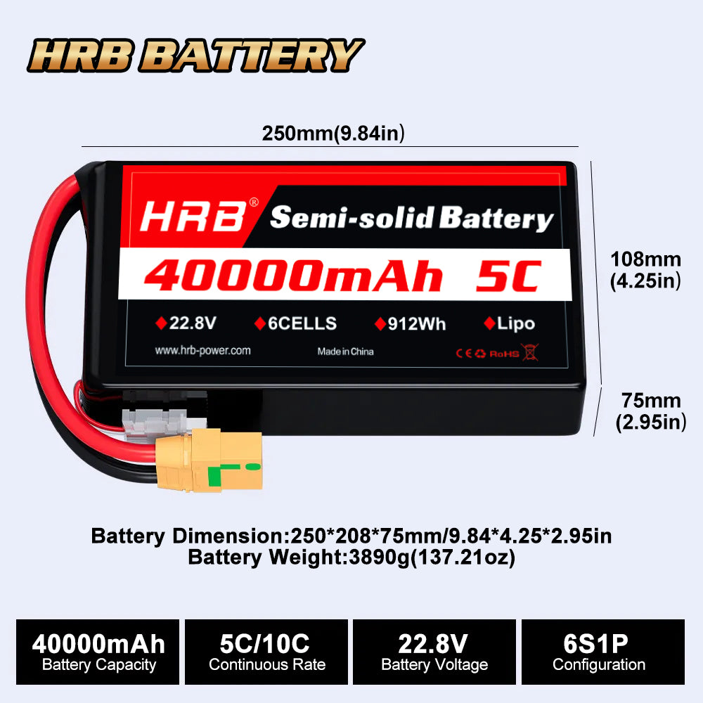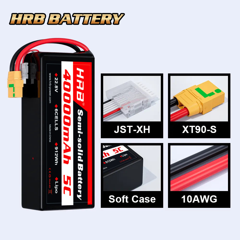 HRB 40000mAh 5C 6S 22.8V Semi-solid battery Customizable