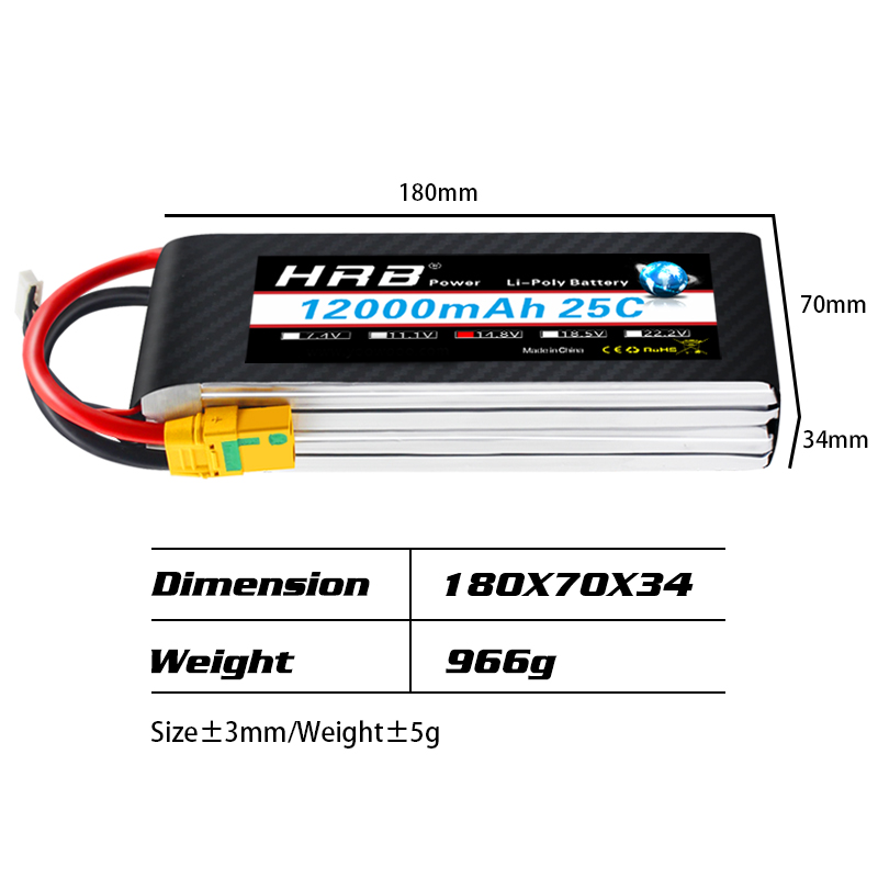 HRB 4S 14.8V 12000mAh LIPO BATTERY XT60/XT90S/AS150/XT150 for Plane Drone Boat