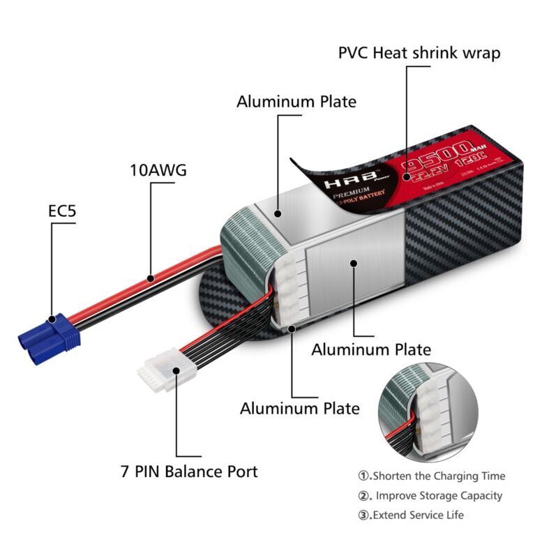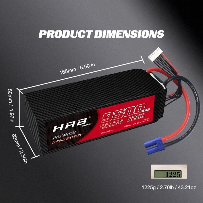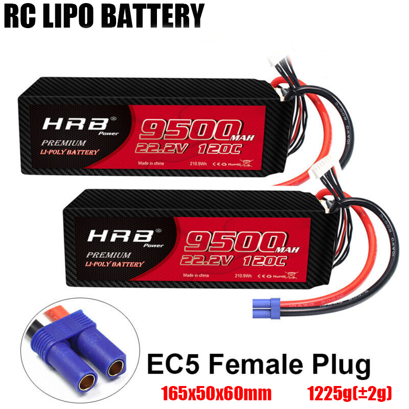 2pcs HRB 22.2V 6S 9500mAh LiPo Battery 120C EC5 for RC Car Helicopter EDF