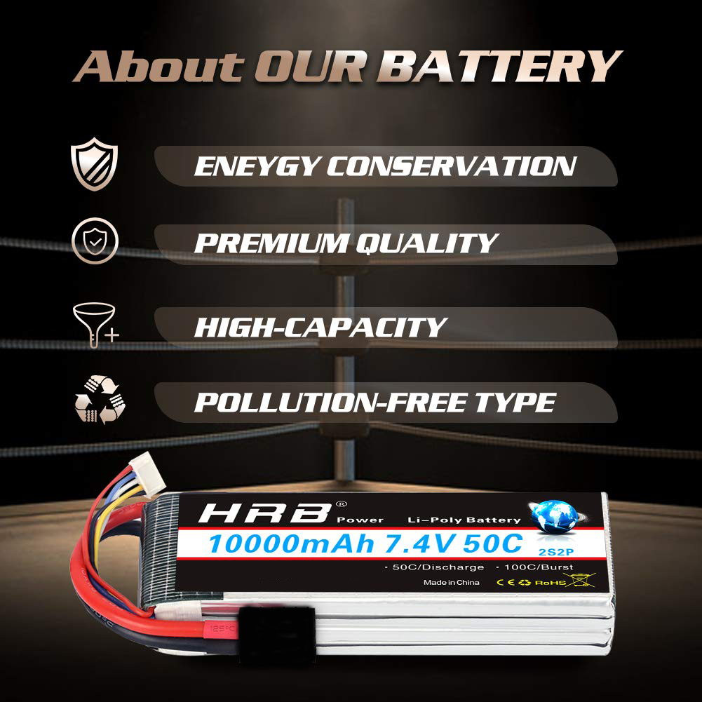 2pcs HRB 2S2P 10000mah 7.4V 50C LiPo Battery for RC Drone Car Helicopter