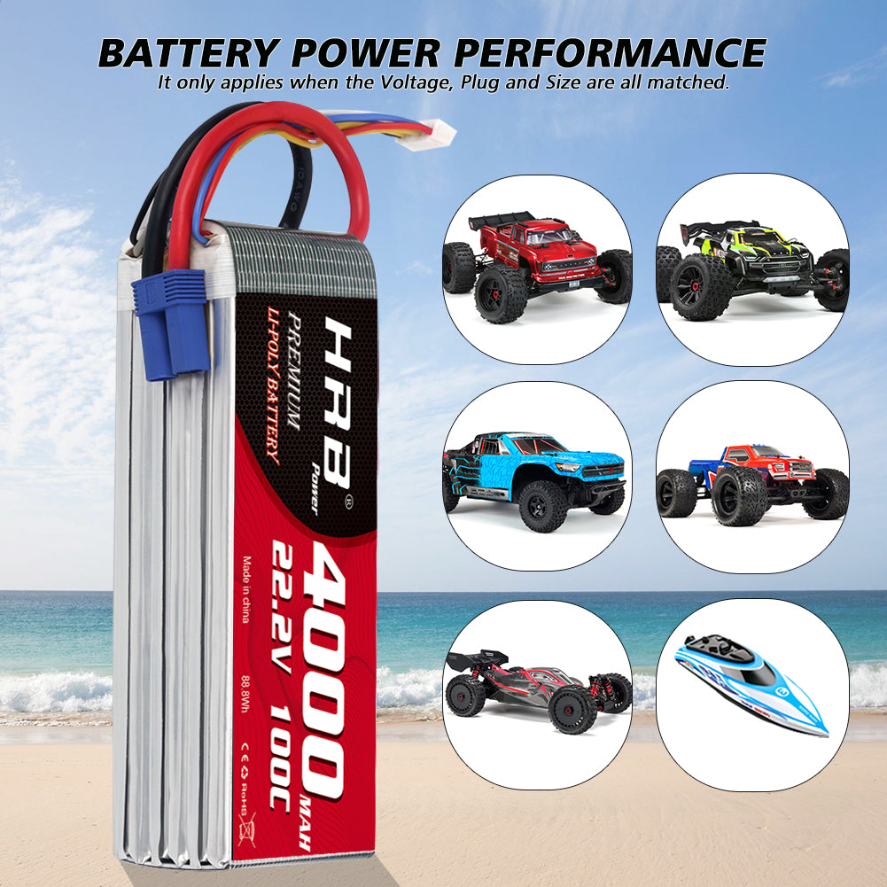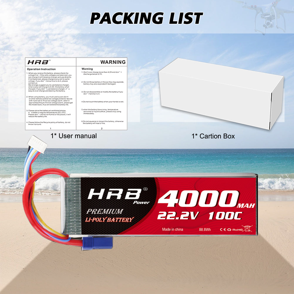 2PCS HRB 4000mAh 6S 22.2V LiPo Battery 100C for RC Helicopter Airplane Boat