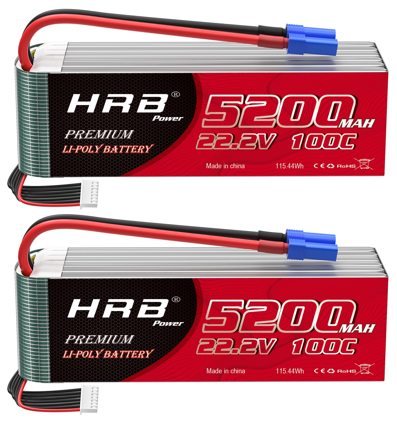 2xHRB 22.2V 6S Lipo Battery 100C 5200mAh EC5/XT90 Plug for RC Car Helicopter EDF